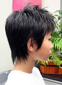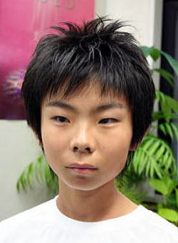 髪が硬く毛量も多くさらに両サイドの角がボリュウムが出やすい少年の