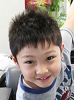 しネープをやや長めにしたヘアースタイル・汗を沢山かくお子様