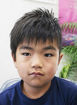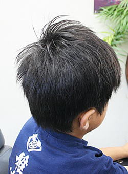 左サイドは短く刈り上げ、右に行くにしたがい少し長さを残す・アシンメトリ