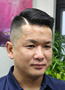 髪が固く毛量が多くベースにパーマをかけ・全体の長さを5〜6センチにカット!サイド・バックを少し刈り上げ、それはもう簡単にドライヤーで軽く乾かすだけで、セットOKです。 |
