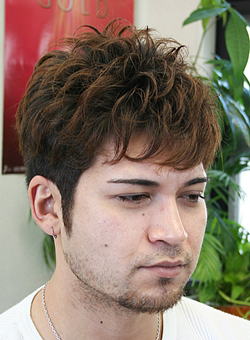 くせ毛を生かしサイドの内側を厚く高め・自然な刈り上げでツーブロックカット、